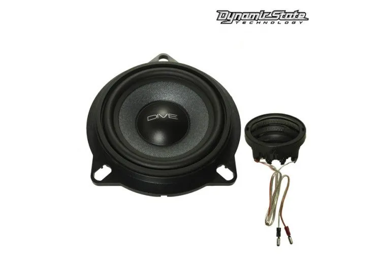 Dynamic State DCS-BMW104P DIVE Series 2-х компонентная акустика 10см (4") для штатных мест в автомобилях BMW и MINI, комплект. RMS/max 40/80 Вт, 4Ом, 85Hz - 20kHz, 88±2 dB @ 1 watt/1 meter. Т.х. среднечастотника: Диаметр звуковой катушки 1" / 25 мм. Магнит неодимовый, 2-слойный. Материал диффузора: усиленная целюлоза. Литая пластиковая корзина. Монтажная глубина 33,5мм. Монтажный диаметр 95мм. FS 126,68 Hz; Re 3,2 Ohm; Le 0.32mH; Qms 6,496; Qes 0,736; Qts 0,661; Vas 1,428 L; Sd 5,54 cm2; Xmax 0,15 mm. Т.х. твитера: 2kHz - 20kHz. Шёлковый купол. Диаметр звуковой катушки 28 мм. Магнит неодимовый. Т.х. кроссовера: Частота раздела 7 kHz @ 6 dB/Okt. Варианты частот среза .+2dB / 0dB / -2dB. Данный комплект снабжён универсальными проводными адаптерами, с помощью которых можно подключится, как к штатной бортовой системе через разъёмы PLUG & PLAY, так и с помощью универсальных разъёмов к независимому усилителю звука. Комплектуется универсальными монтажными адаптерами практически для всех моделей автомобилей BMW и MIN